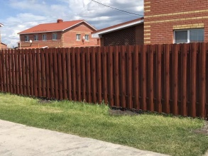 Заборы из металлического штакетника в шахматном порядке в Рузе